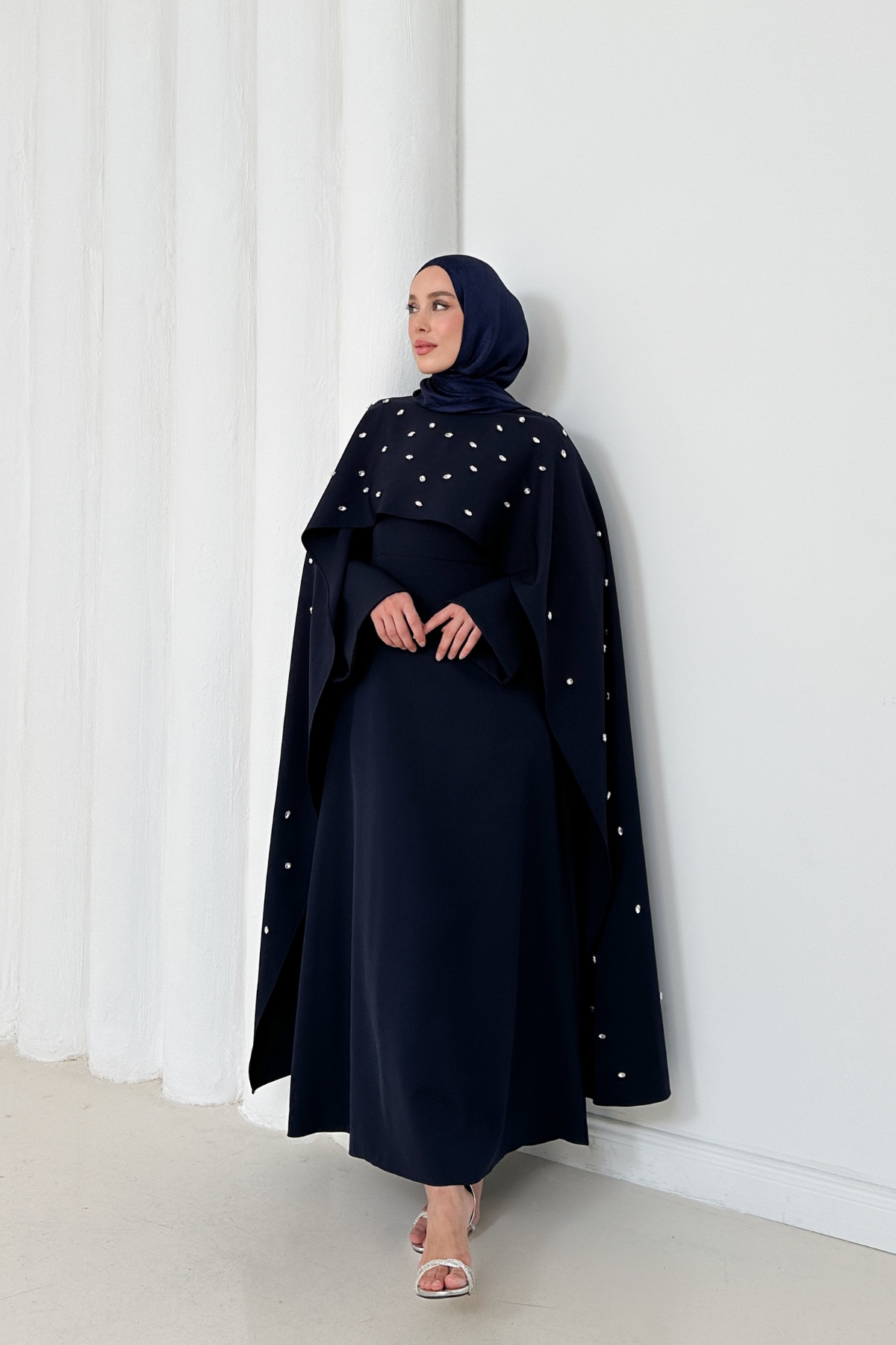 Işıltılı taş detayları ve şık pelerin tasarımıyla bu elbise, özel günlerinizde sizi her zamankinden daha ayrıcalıklı hissettirecek.