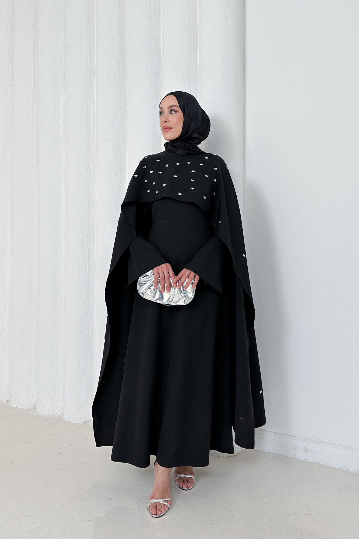 Işıltılı taş detayları ve şık pelerin tasarımıyla bu elbise, özel günlerinizde sizi her zamankinden daha ayrıcalıklı hissettirecek.