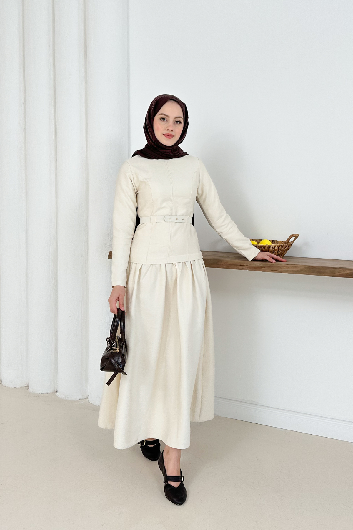 Doğal dokusu ve hafif yapısıyla cupra kumaş elbise, ekstra kemer detayıyla şıklığınızı ön plana çıkarıyor. Gün boyu zarif, konforlu ve modern bir görünüm için ideal.