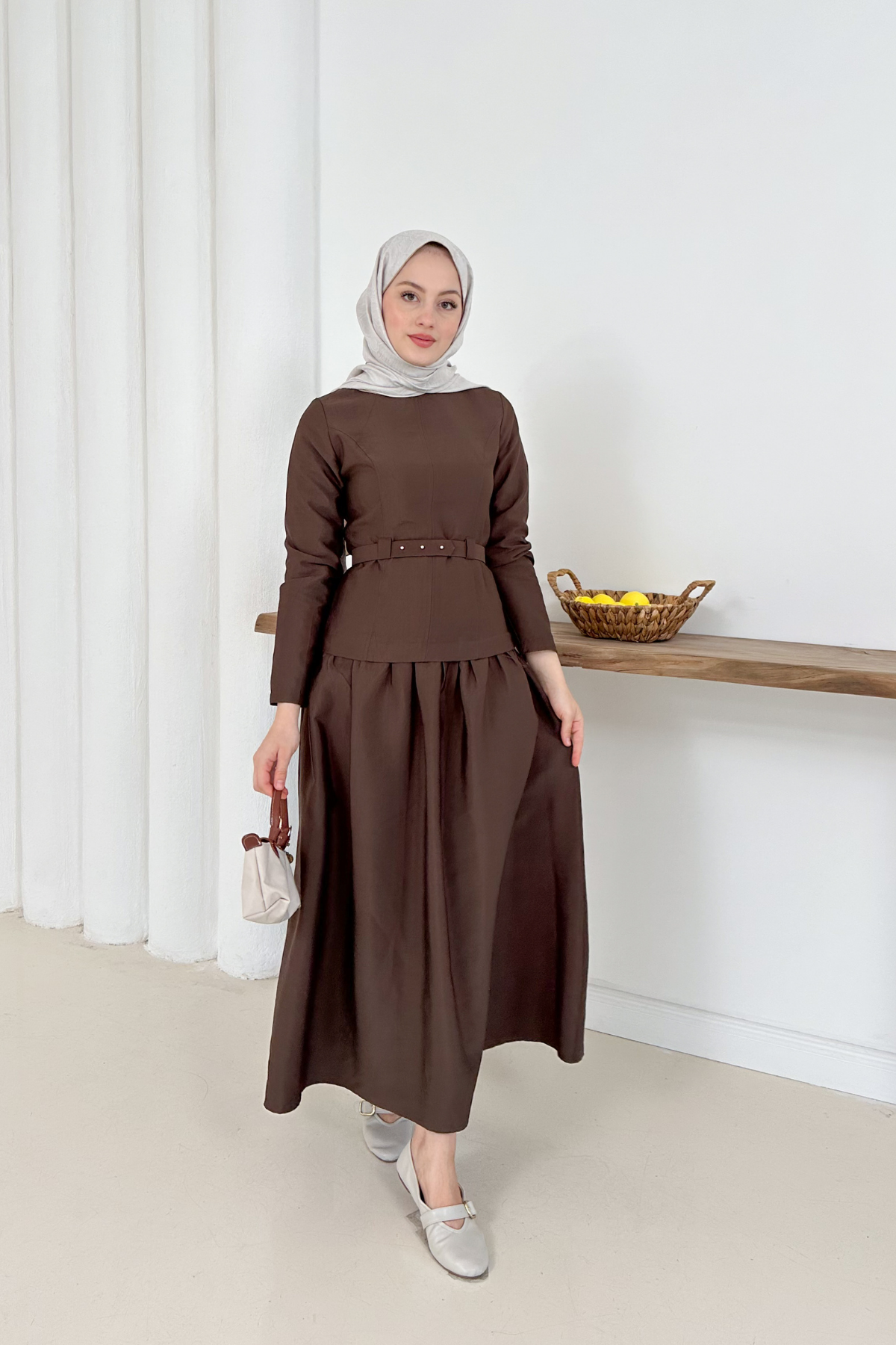 Doğal dokusu ve hafif yapısıyla cupra kumaş elbise, ekstra kemer detayıyla şıklığınızı ön plana çıkarıyor. Gün boyu zarif, konforlu ve modern bir görünüm için ideal.