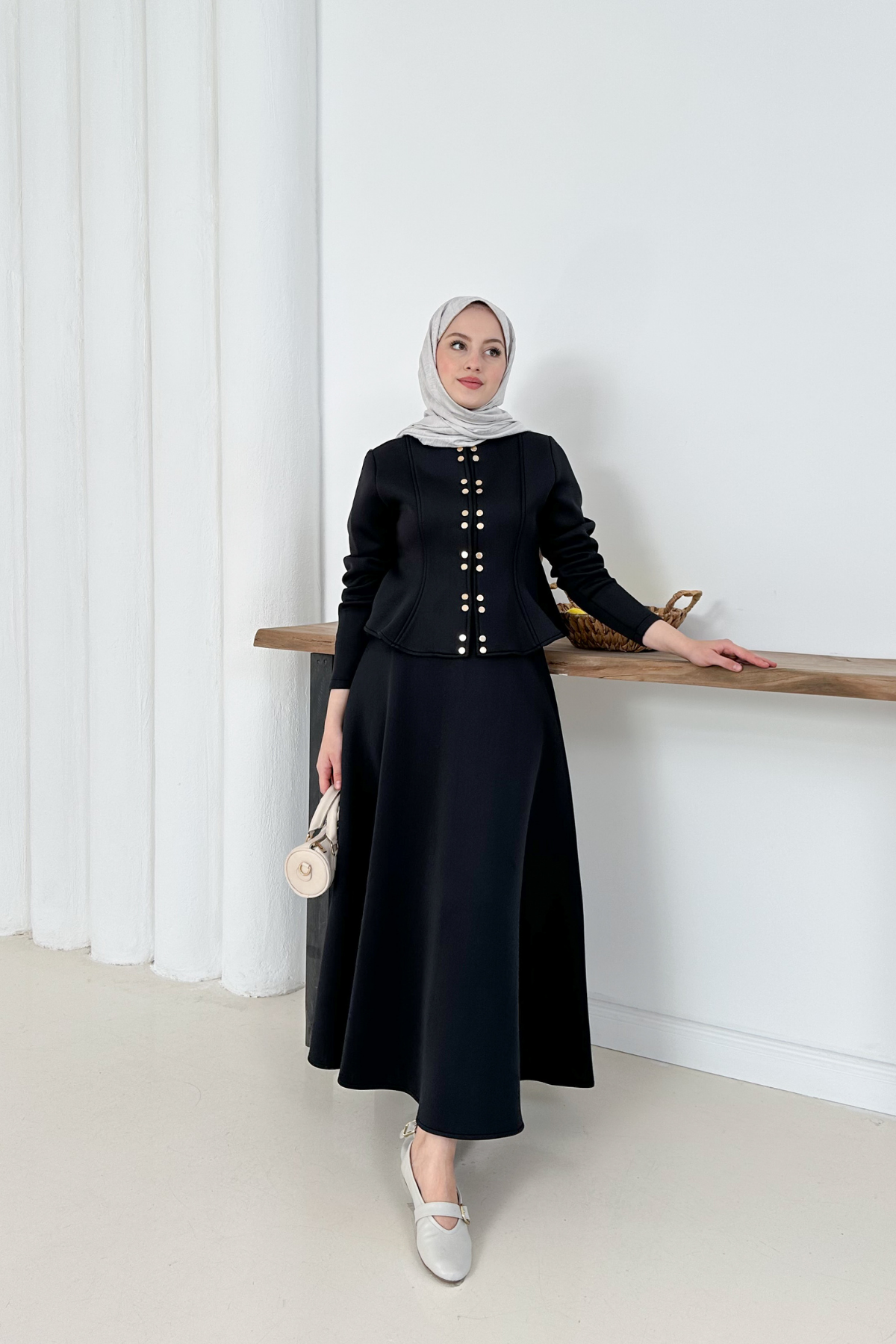 Scuba kumaşın şıklığıyla tasarlanan bu takım, güçlü duruşunuzu modern bir dokunuşla yansıtıyor.Gün boyu konfor, her an zarafet.