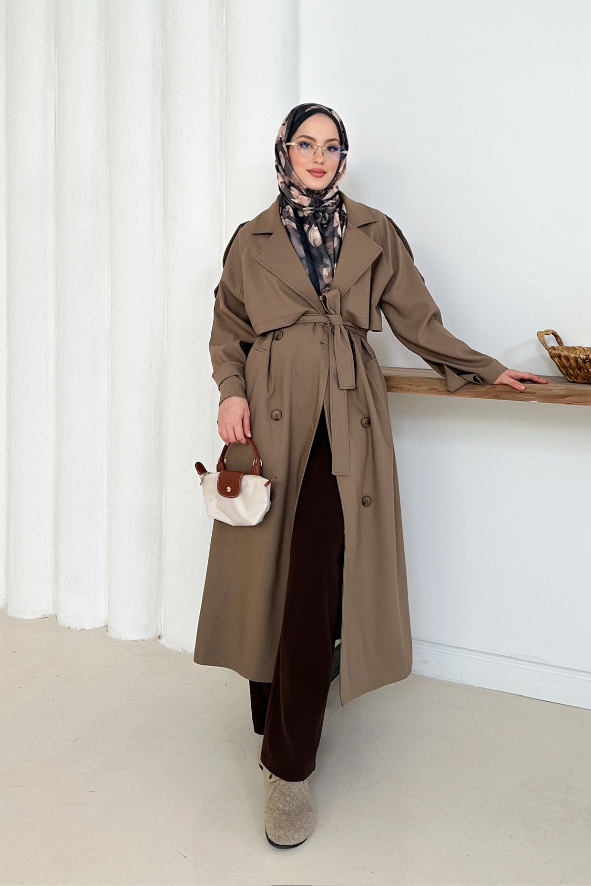Rahatlık ve şıklık bir arada. Akıcı formu, sade çizgileriyle asil bir görünüm sunarken, zarif duruşuyla fark yaratıyor. Fular detayı ve uzun boyuyla bu trench, her sezonun kurtarıcı parçası olmaya aday.