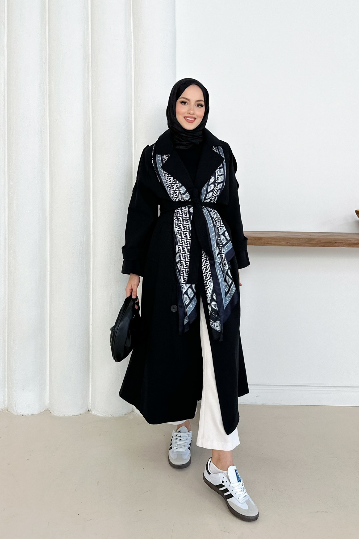Rahatlık ve şıklık bir arada. Akıcı formu, sade çizgileriyle asil bir görünüm sunarken, zarif duruşuyla fark yaratıyor. Fular detayı ve uzun boyuyla bu trench, her sezonun kurtarıcı parçası olmaya aday. Ürün boyu: 120 cm'dir. Fular detaylıdır. Manken: 1.74 cm 60 kg'dir. Fular aksesuar olarak kullanılmıştır. Dahil değildir.