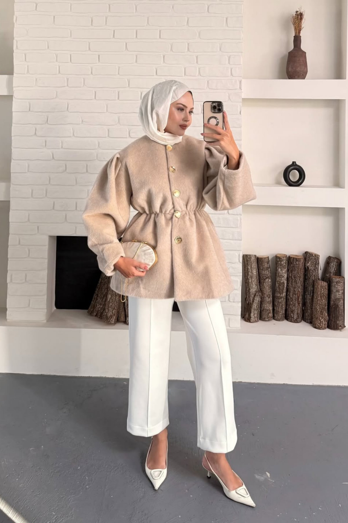 Premium kaşe ve tüylü dokusuyla soğuk günlerin şıklığı! Gold düğme detaylarıyla her kombine sofistike bir dokunuş katıyor.
