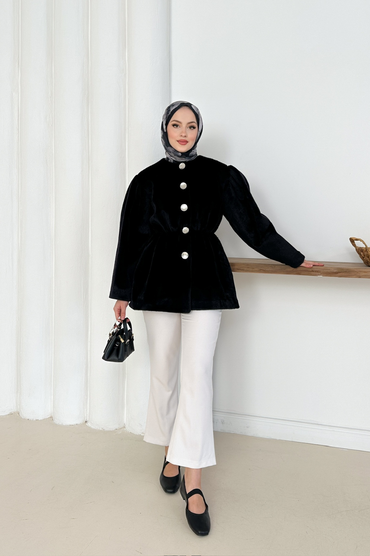 Premium kaşe ve tüylü dokusuyla soğuk günlerin şıklığı! Gold düğme detaylarıyla her kombine sofistike bir dokunuş katıyor.