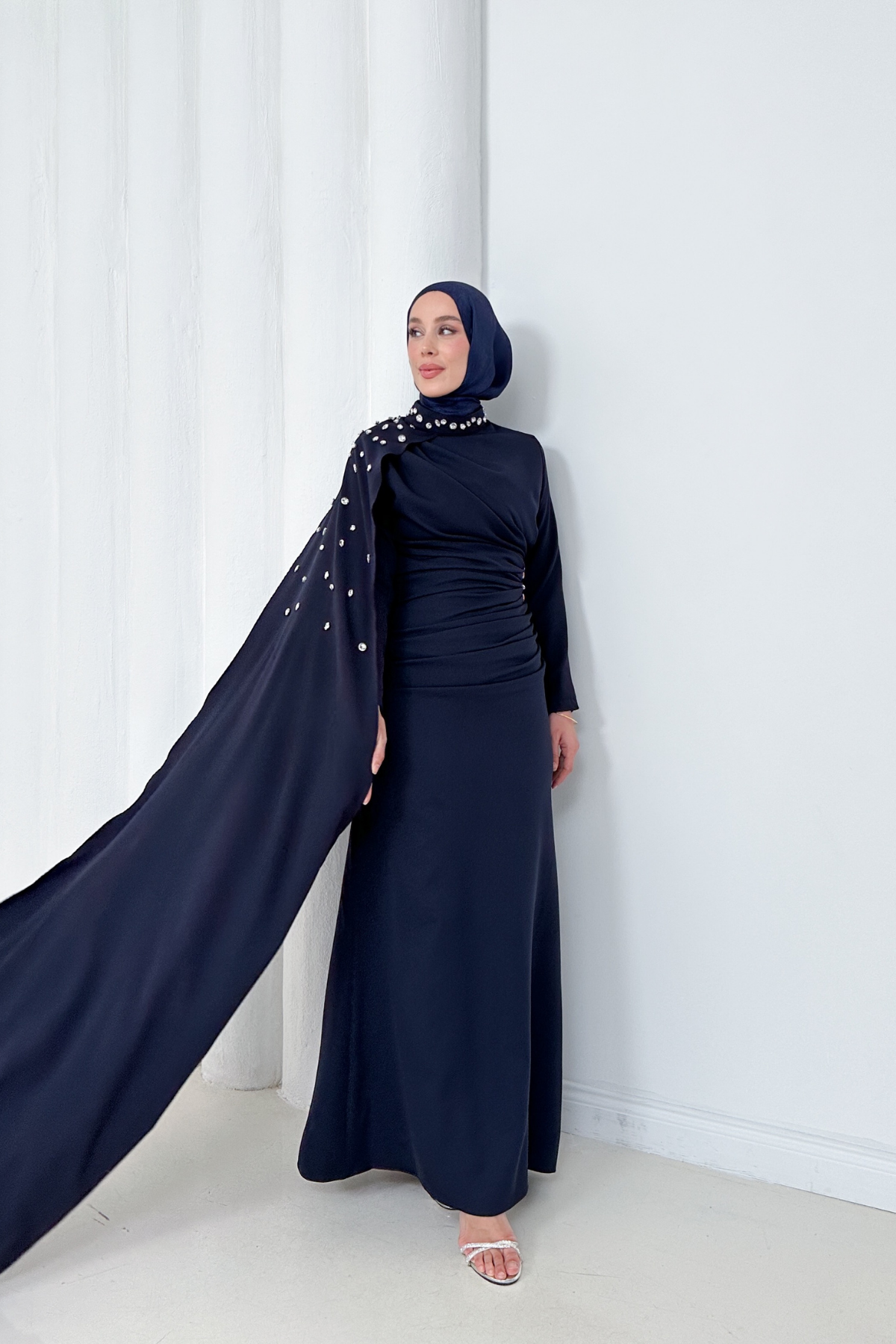 Işıltılı taş detayları ve şık pelerin tasarımıyla bu elbise, özel günlerinizde sizi her zamankinden daha ayrıcalıklı hissettirecek.